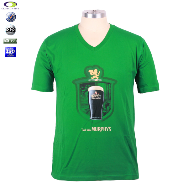定制广告衫男士V领印花绿色t恤衫定做 |