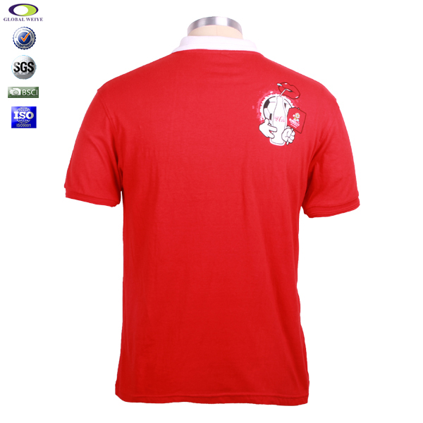 定做男士红色印花白领翻领短袖广告宣传T恤衫定制 |