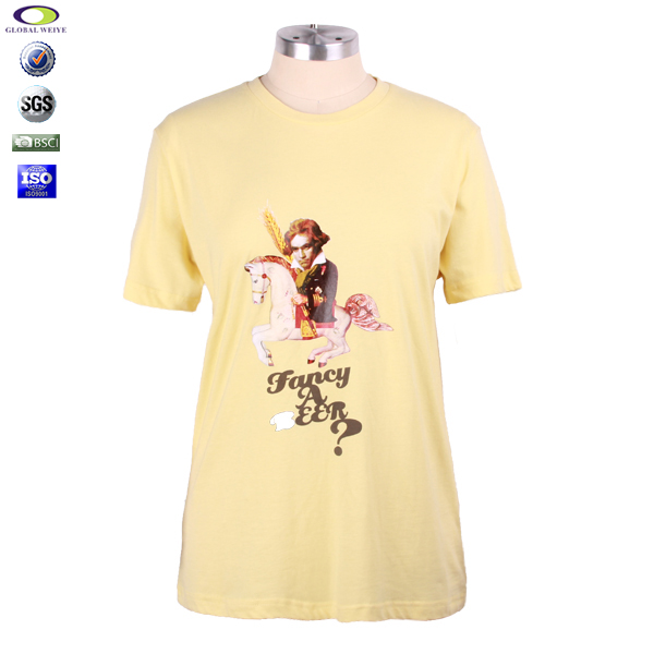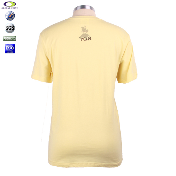 女士浅黄色团队广告宣传衫圆领印花纯棉短袖T恤衫定制厂家 |