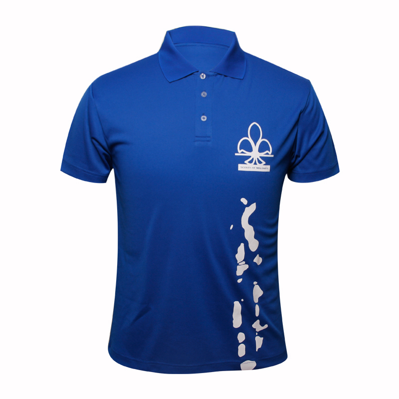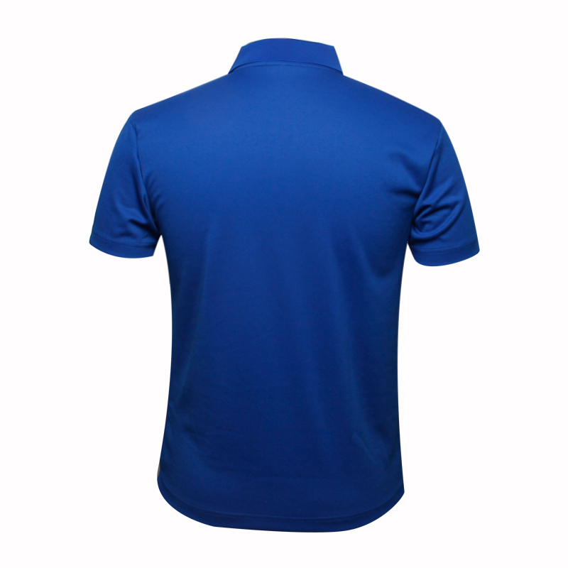 男士全涤印花POLO衫蓝色翻领短袖T恤,采用100%涤纶面料,速干面料,舒适耐穿,高性价比经典短袖翻领款式,专业纸样 标准裁剪。环保丝网印logo,突显时尚魅力,常适用于运动时尚休闲类场合