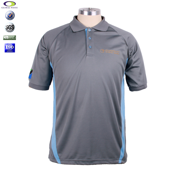 定做男士全涤刺绣网眼蓝灰拼接POLO衫翻领短袖T恤衫工作服 |