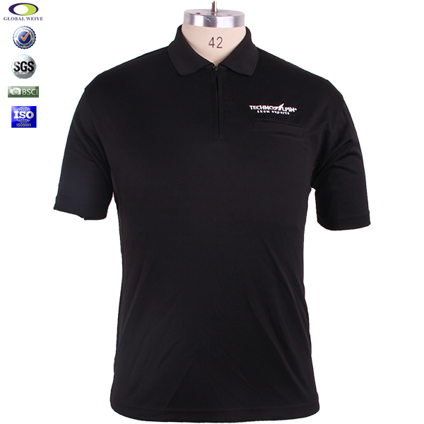 定做男士全涤拉链刺绣口袋POLO衫黑色翻领短袖T恤衫工作服 |