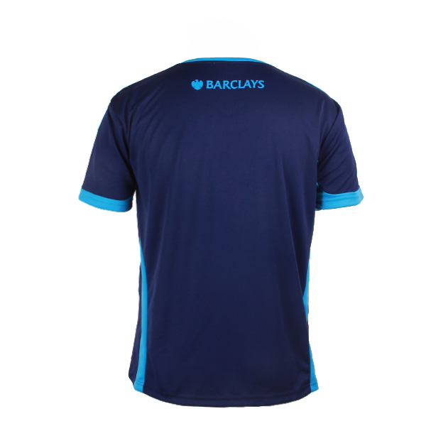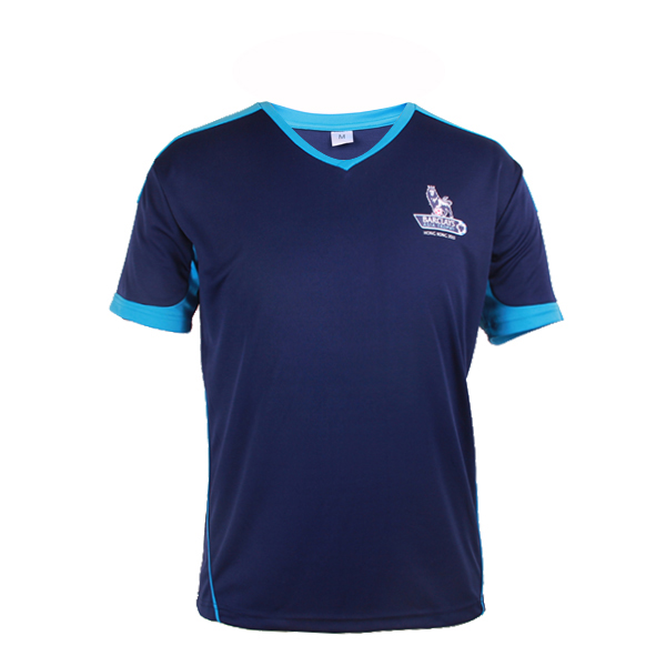 订制深蓝色全涤V领异色领印花T恤男短袖T恤衫运动服 |
