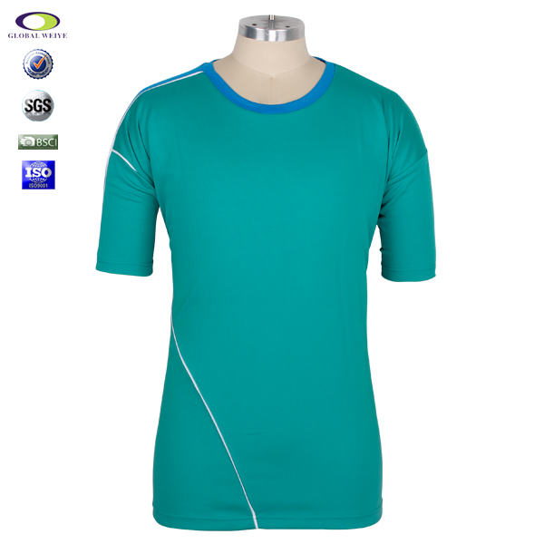 定制男士蓝色领绿色空白T恤衫全涤圆领短袖定制工厂 |