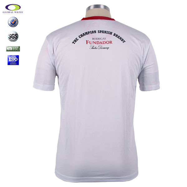 男士全涤V领白色印花宣传短袖T恤衫,采用全涤速干面料,舒适耐穿,高性价比,前后幅高品质环保丝网印logo, 专业纸样 标准裁剪.