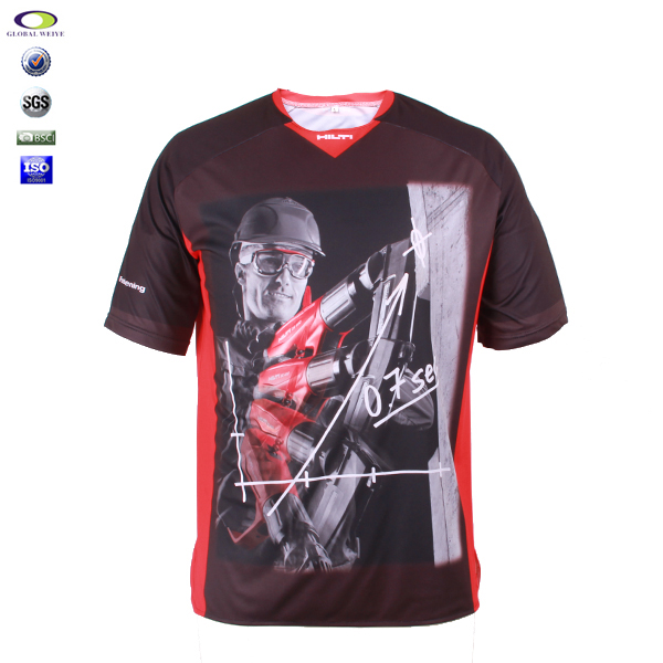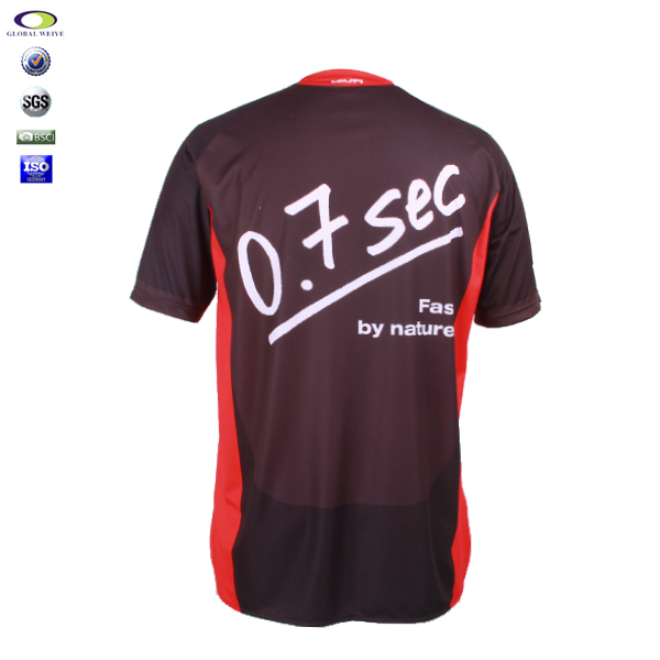 定制男士黑红拼接全涤热升华圆领短袖T恤衫定制厂家 |